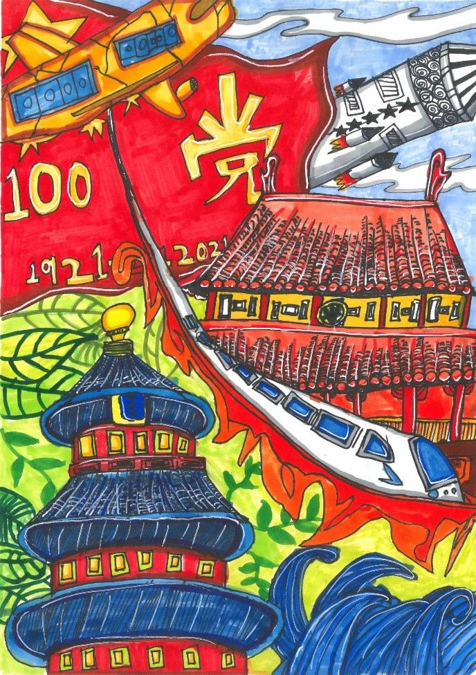 (二)作者:管烁然 年龄:10岁 作品名称:《党的生日》