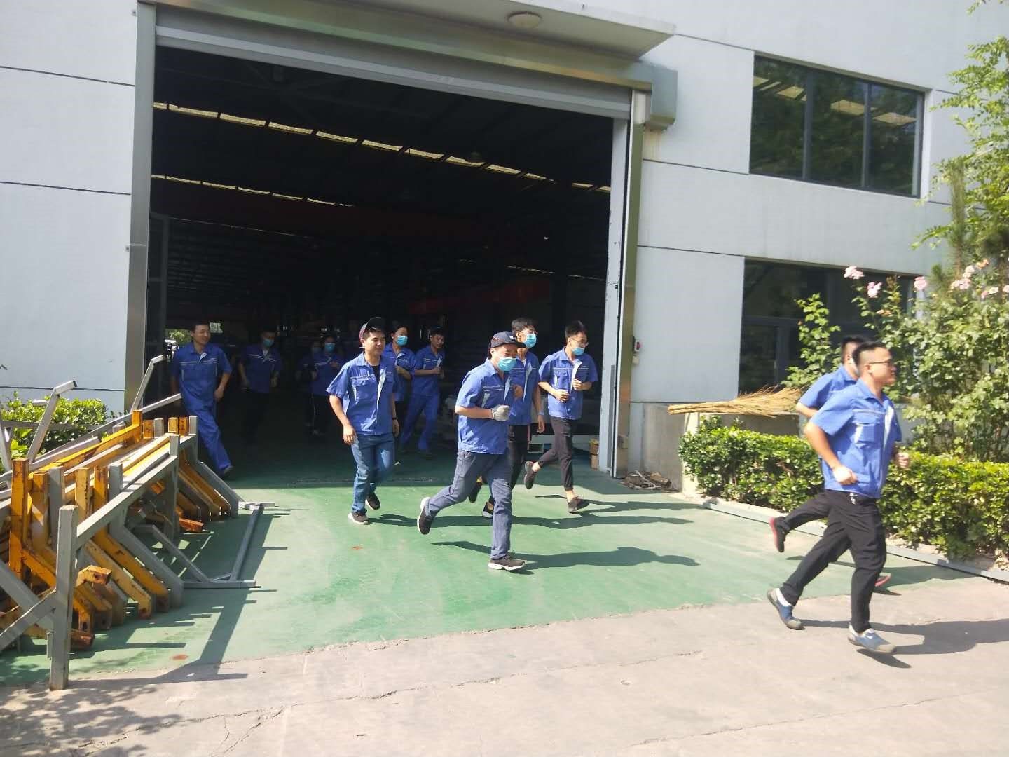 2.播放火灾警报,各车间、各部门分别对人员进行快速疏导,进入逃生通道。