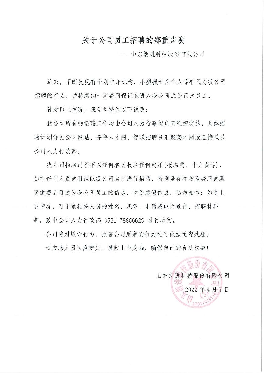 关于公司招聘的郑重声明