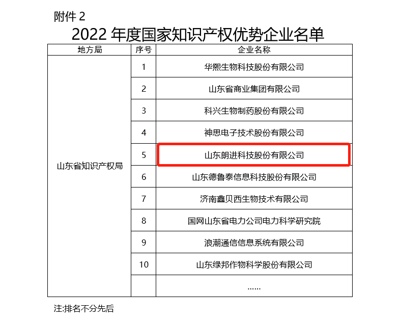 此次入选国家知识产权优势企业,是对朗进科技在知识产权创造能力、运用绩效、保护效能、管理水平等方面的高度认可,公司将继续坚持知识产权创新战略,以入选“国家知识产权示范企业”为目标,不断加强技术创新与突破,加强知识产权运用,提升企业核心竞争力,为实现国家高质量发展贡献力量。