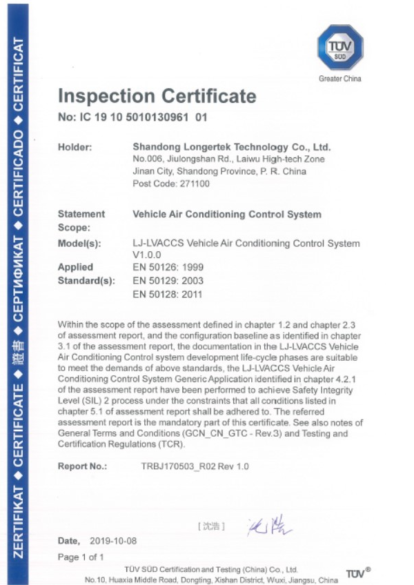 作为一种重要的公共交通工具,轨道车辆的安全性和可靠性一直得到广泛关注。为进一步提升轨道车辆空调产品的安全性和可靠性,7003菠菜导航大全于2017年开始着手开展欢迎莅临优惠大厅产品SIL2安全等级的认证工作,经过两年的持续提升和改进,于2019年10月8日顺利通过SIL2安全等级认证。