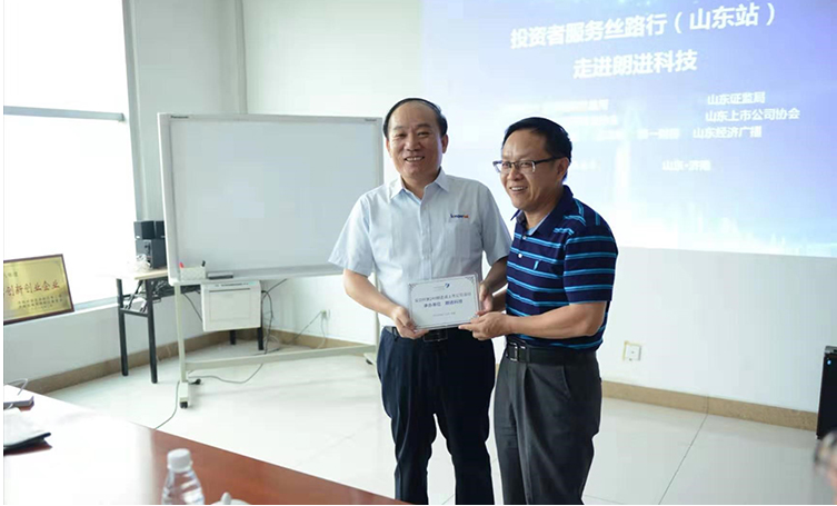 互动交流结束后,深圳证券交易所徐总向朗进科技授赠了活动纪念牌。