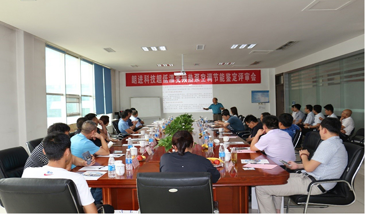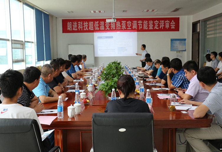 随后,朗进科技新能源事业部总监管庆禹针对朗进超低温变频热泵空调节能技术进行了介绍解说,各运营公司专家进行鉴定评审。评审中,各专家领导对如何提高空调的工作效率、保证空调可以在任何工况下都能输出最大能量、在任何频率下都能达到空调的最高效率及实现低温启动、热泵制热等行业面临的几大痛点进行了充分讨论。