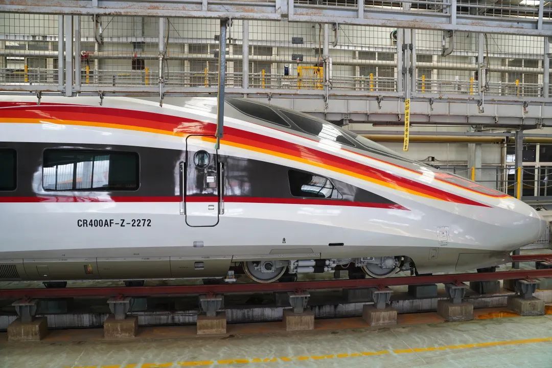 整车设计科技时尚。本次投入运营的CR400AF-Z型复兴号智能动车组,采用标准的8节车厢编组形式,定员578人。车身外观以“瑞龙智行”为主题,“复兴号”三个金色大字苍劲而醒目,红橙黄三色的“飘带”贯穿全车,整体给人飘逸灵动的感觉。复兴号智能动车组在拥有华丽的外表同时,车内更是“科技感”满满。全车空调采用智能温度调节系统,车内温度控制在最佳体感温度;车厢顶部设置29寸宽屏电视,能够左右分屏同时显示列车运行和视频节目信息;卫生间智能识别,实现自动光亮调节,并增加“禁止吸烟”语音提示。