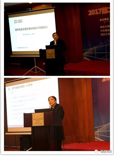 中车长春轨道客车股份有限公司教授级高工康伟:《城市轨道交通车辆空调设计问题研讨》,她向来宾分享了地铁车辆空调系统的几种送风型式,介绍了幅流风机、换热器、低温热泵等城铁空调的技术研究及应用。