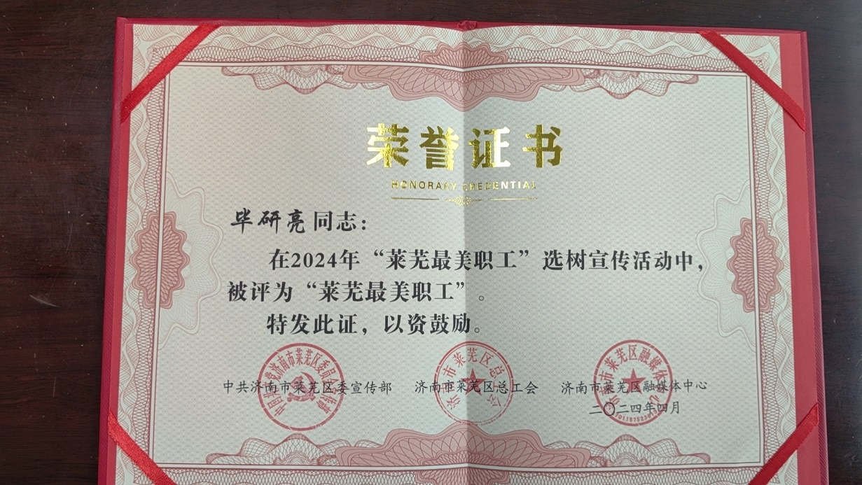为全面贯彻习近平新时代中国特色社会主义思想和党的二十大精神,落实习近平总书记关于工人阶级和工会工作的重要论述,充分发挥工人阶级主力军作用,聚焦“项目深化年”工作动员大会精神,努力打造一支知识型、技能型、创新型产业工人队伍,莱芜区委宣传部、区总工会、区融媒体中心开展了2024年“莱芜最美职工”选树宣传活动。经基层单位审核推荐、初审、专家评审等阶段,确定了2024年“莱芜最美职工”候选人10人,提名奖候选人10人。其中,朗进科技工程设计中心毕研亮获得2024年度“莱芜最美职工”的荣誉称号。