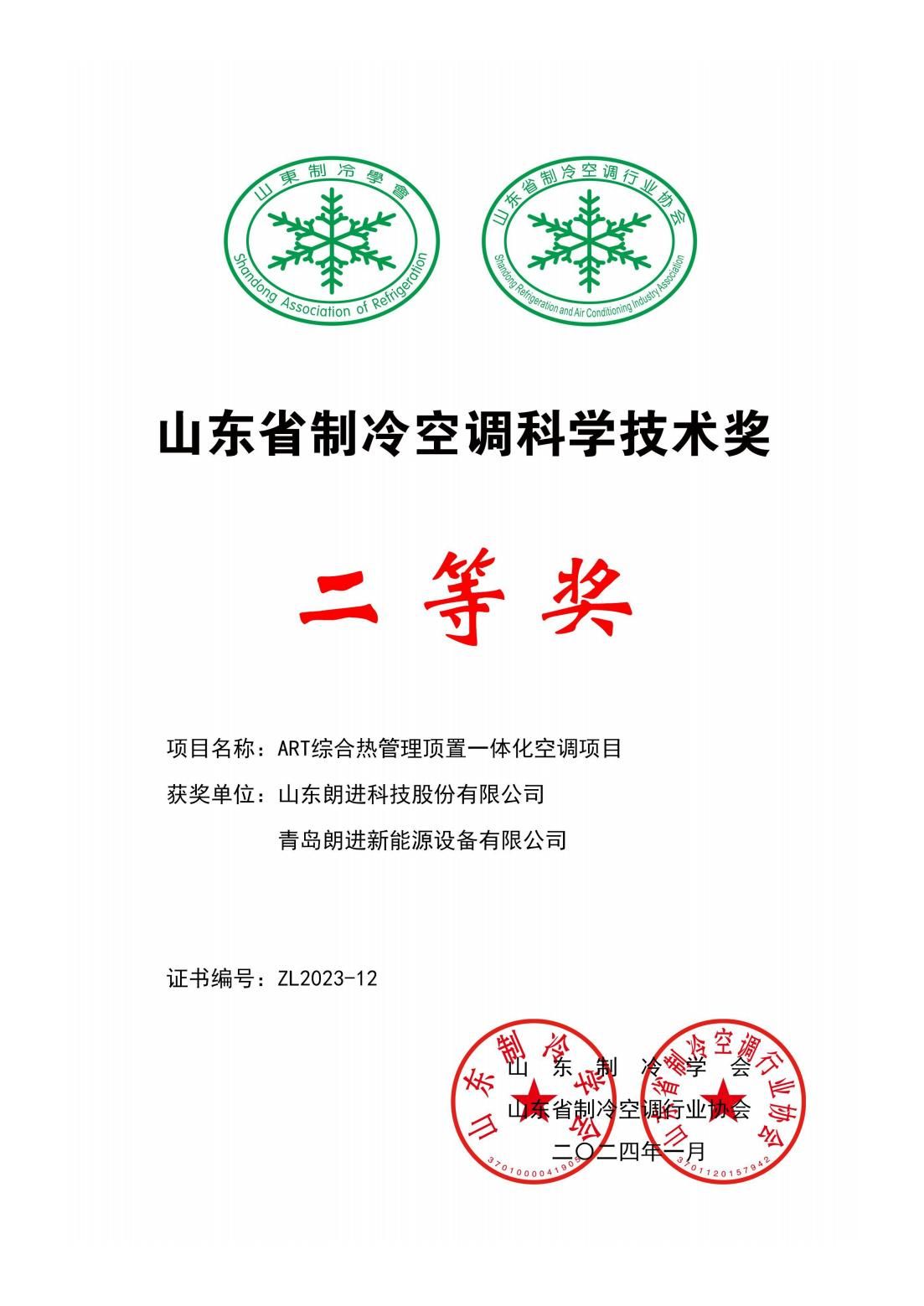近日,由山东制冷学会和山东省制冷空调行业协会共同主办的2024年山东省制冷空调暖通学术交流大会在济南泉城大酒店隆重开幕。会上,举行了“2023年度山东省制冷空调先进单位”和“2023年度山东省制冷空调科学技术奖”颁奖仪式。朗进科技“ART综合热管理顶置一体化空调项目”、“储能用液冷机组”两项产品荣获山东省制冷科学技术二等奖,这无疑是对公司技术实力和创新能力的肯定。这两项产品之所以能够获得如此殊荣,主要得益于其在制冷技术领域的卓越表现。