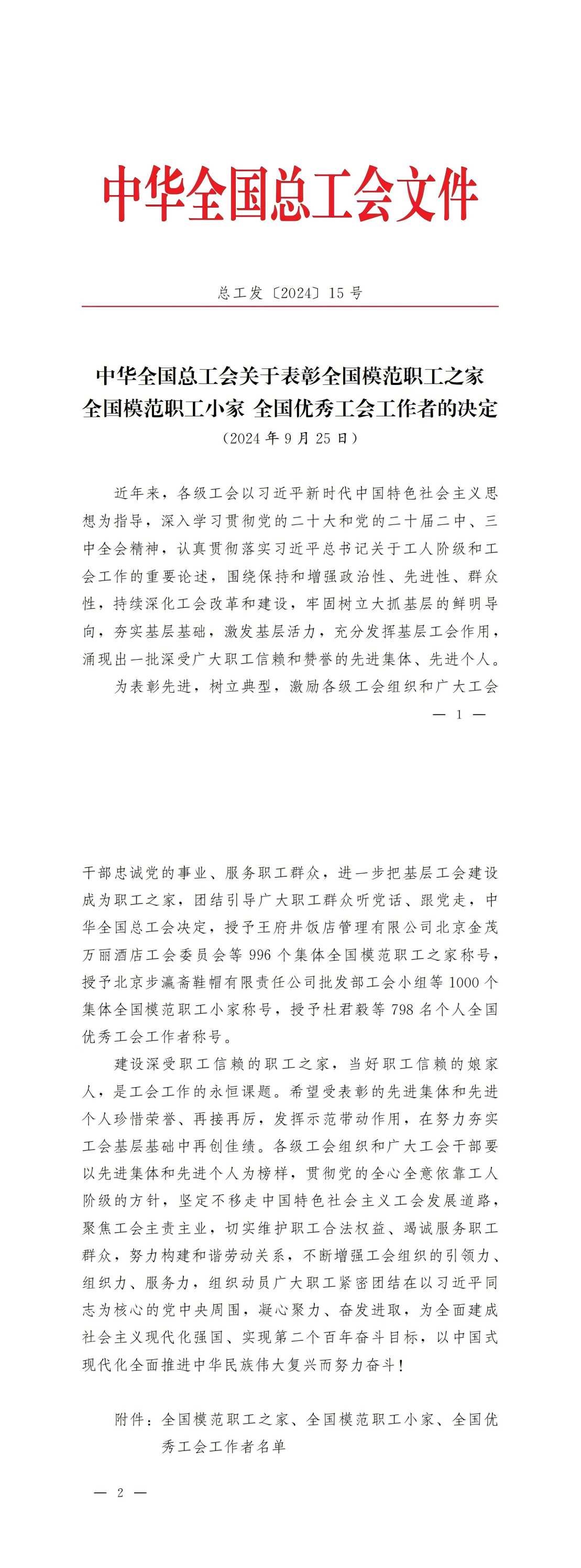 在这金秋送爽、硕果累累的美好时节,经过不懈努力与卓越表现,朗进科技荣获“全国模范职工之家”这一崇高荣誉,令人振奋!“全国模范职工之家”荣誉称号由中华全国总工会设立,是全国工会系统表彰先进集体的最高荣誉,是对基层工会工作的最高褒奖和肯定,是国家级的典型和标杆。
